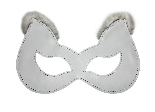 Игривая маска белого цвета, выполненная из натуральной кожи. Ушки маски украшены нежным белым эко-мехом, что придаёт ей изящности. Фиксируется сзади с помощью металлической пряжки, позволяя выбрать комфортный обхват головы. Форма макси эффектно подчеркивает глаза и создаёт необычный образ.