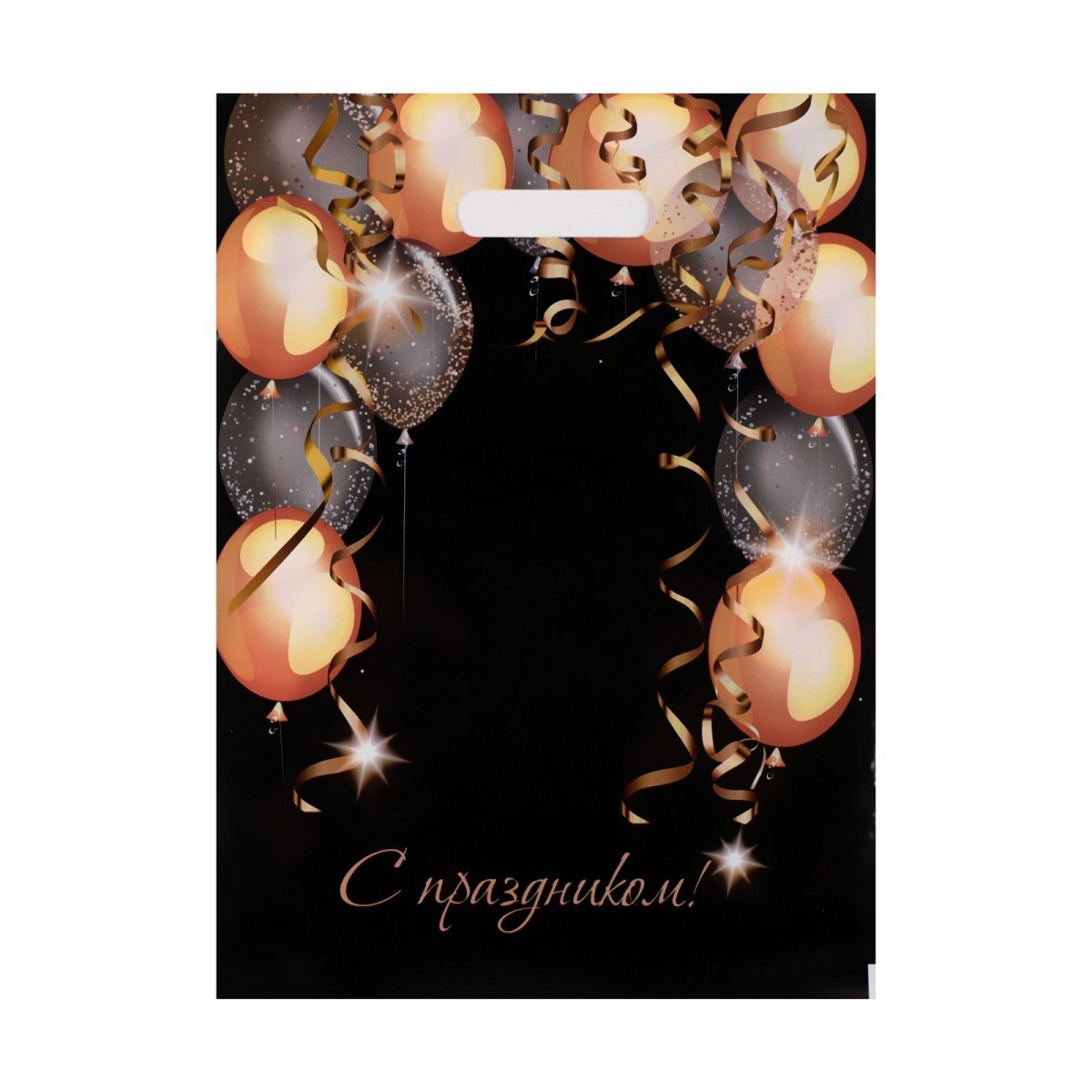 Пакет с вырубной ручкой и принтом в виде шариков (30х40 см).